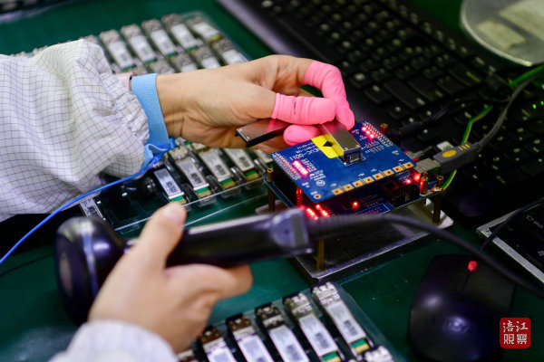在调测试区,技术人员仔细检查每一个产品,从常温调试、老化状态测试到信息检查,全方位确保华拓光通信产品能在各种环境下稳定运行。