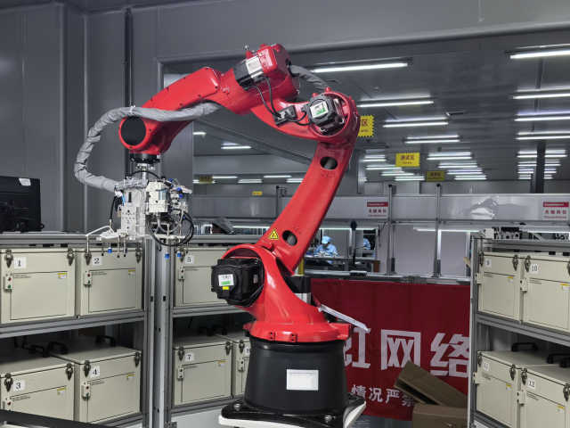 偌大的车间里几乎不见人影,却一派繁忙:数台wifi自动化校准设备机器轰鸣,机械臂按照顺序一片片抓取wifi电路板,将其放进校准柜中读取、修订、测试参数……